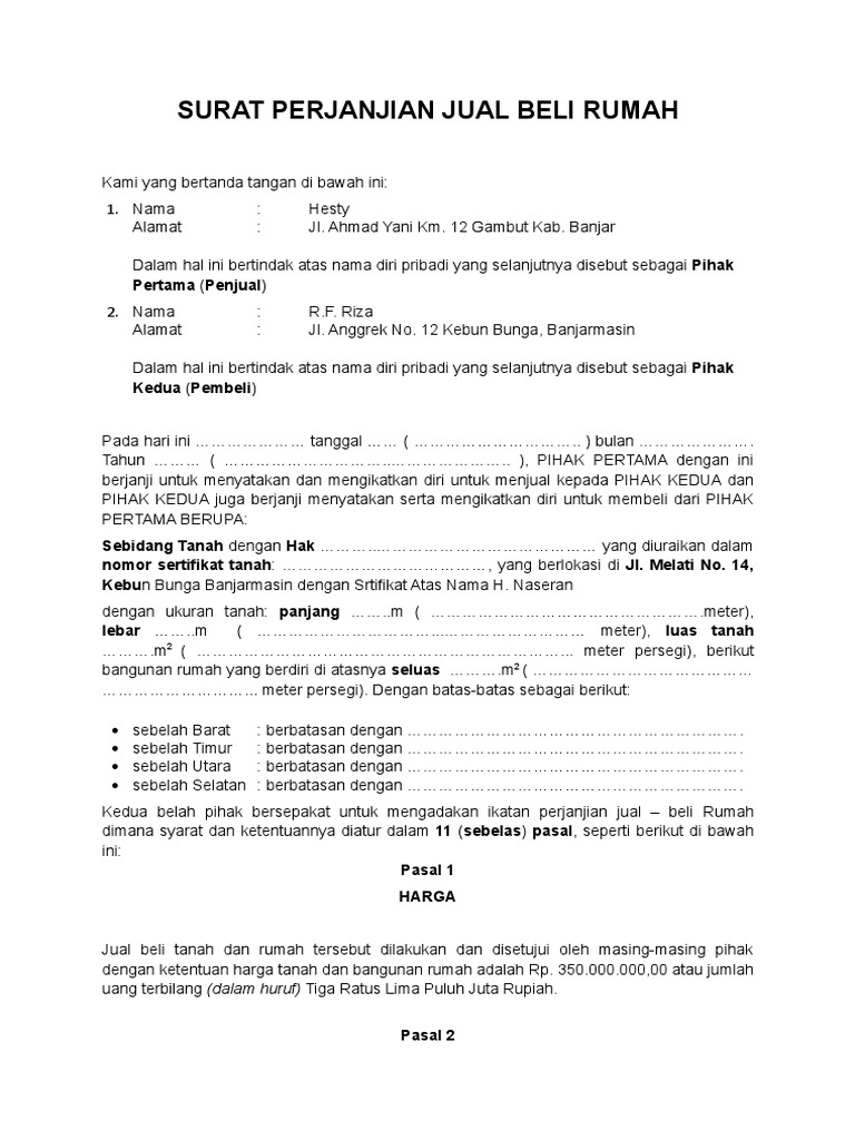 Contoh Surat Perjanjian Jual Beli Rumah Dengan Uang Muka Doc Content from i1.wp.com Surat perjanjian tanda jadi jual beli rumah. We did not find results for: Check spelling or type a new query. Maybe you would like to learn more about one of these?